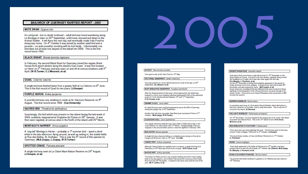 Below are the annual reports of the Guernsey Rare Birds Committee (and also the latest Guernsey Bird List).